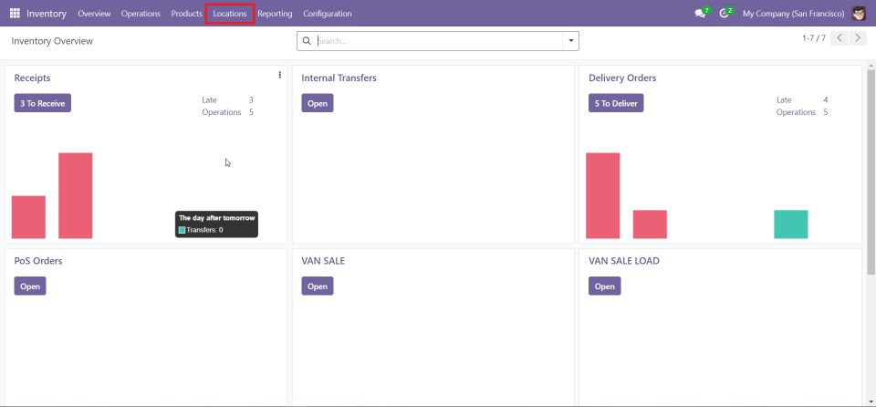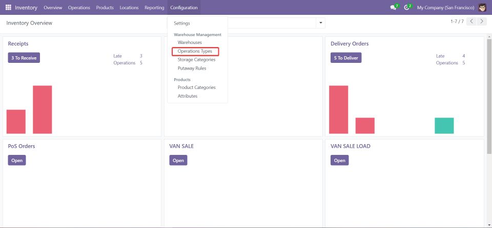 5. Ensure Operation Types are loaded in the Inventory Module:
