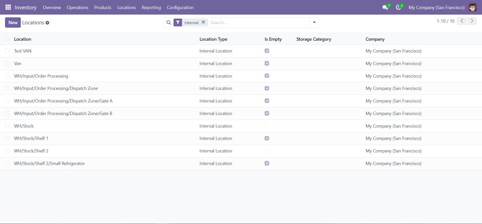 • Location Type: Indicates whether the location is internal, external, or customer related.