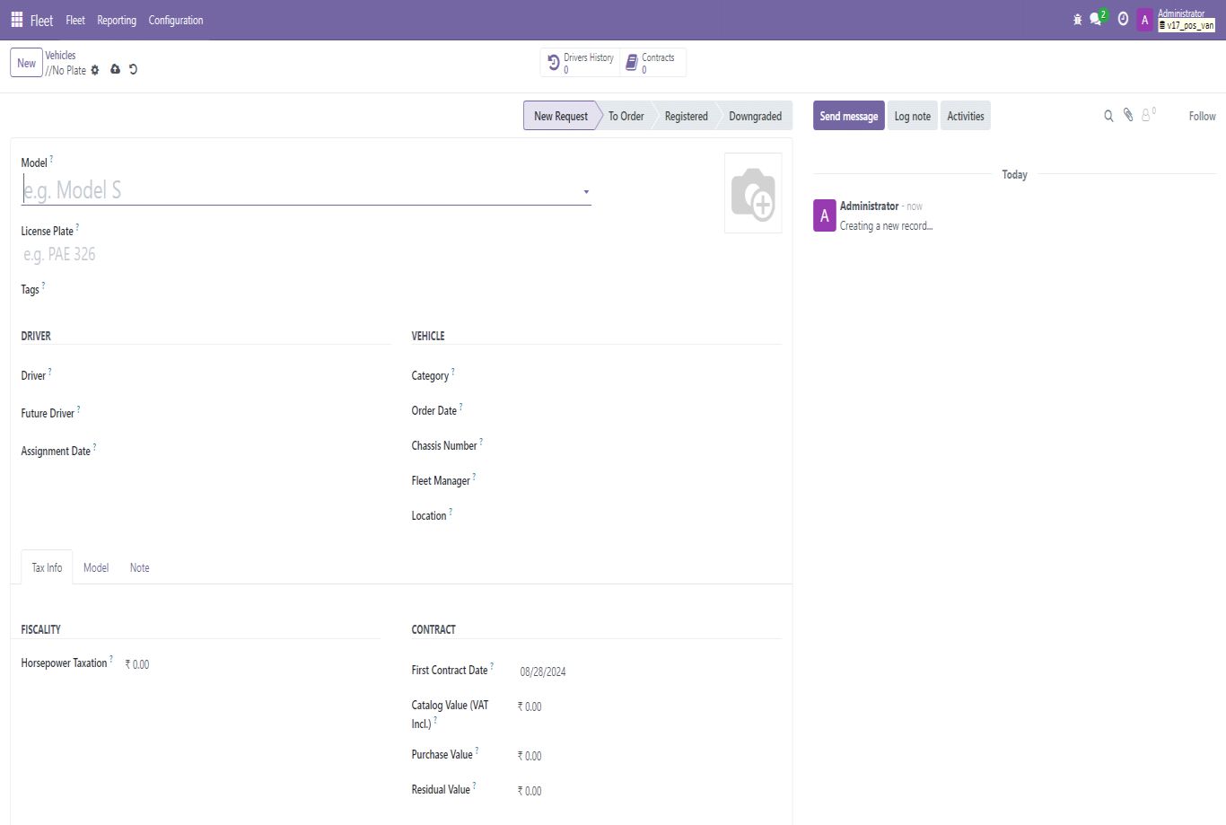 • Navigate to the Fleet Management module in Odoo.