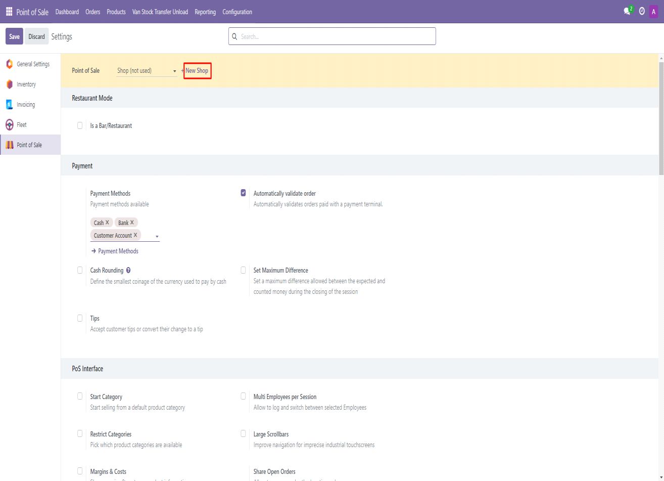 This step allows you to set up a new Point of Sale instance that can be tailored for van sales operations