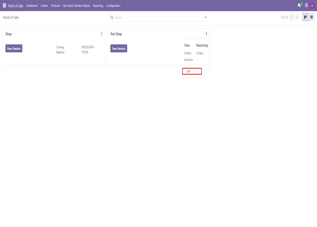 • Click on the three-dot menu next to the POS and select Edit.