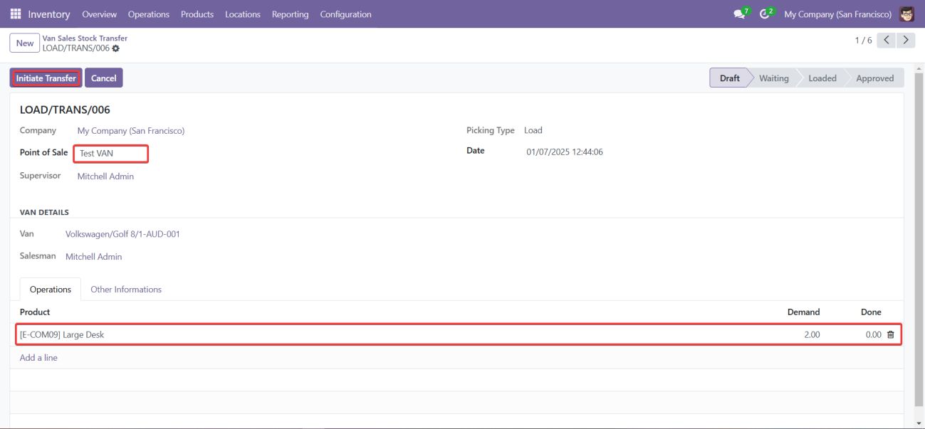 6. Initiate the Van Stock Transfer Loading Process:
