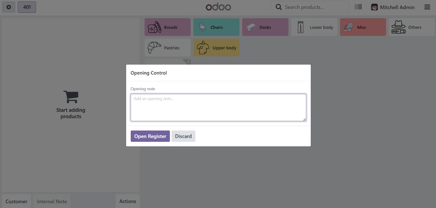 • Go to the Point of Sale module in Odoo.