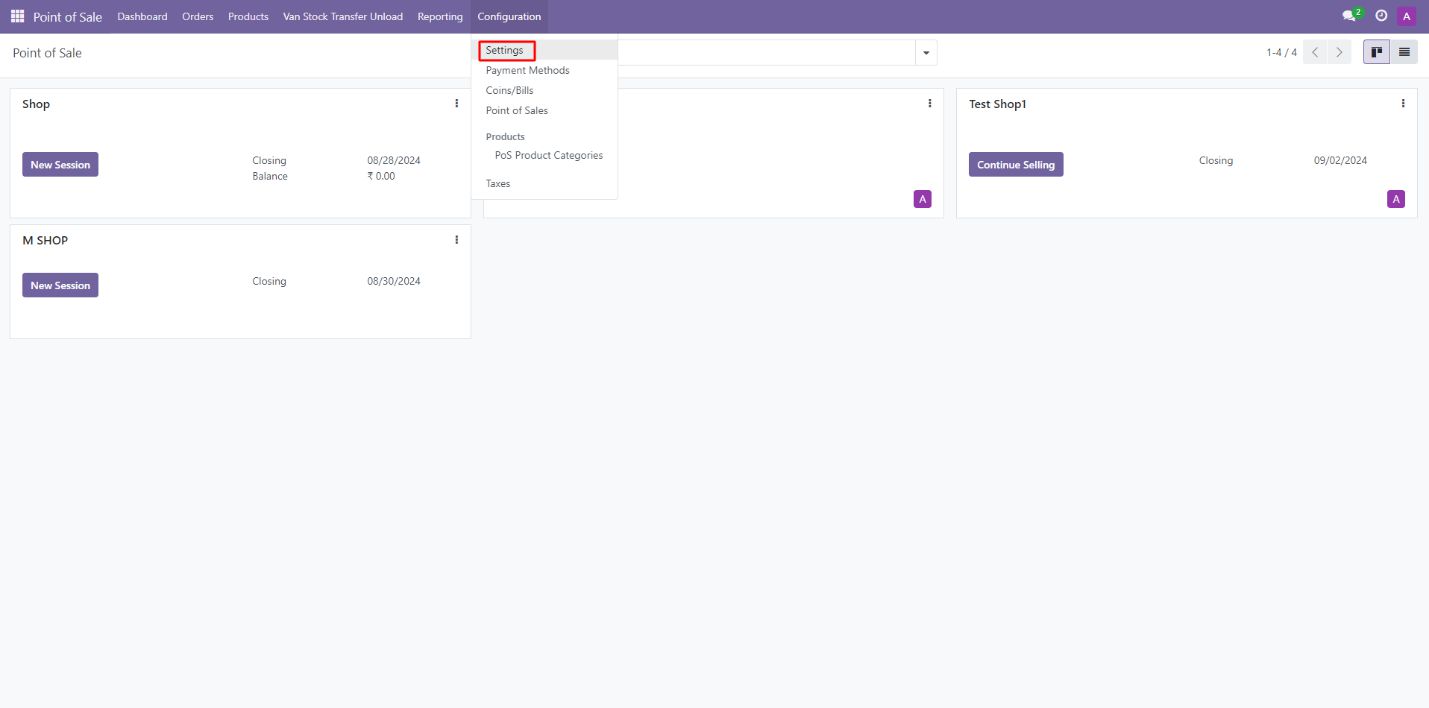 • Go to the POS module in Odoo.