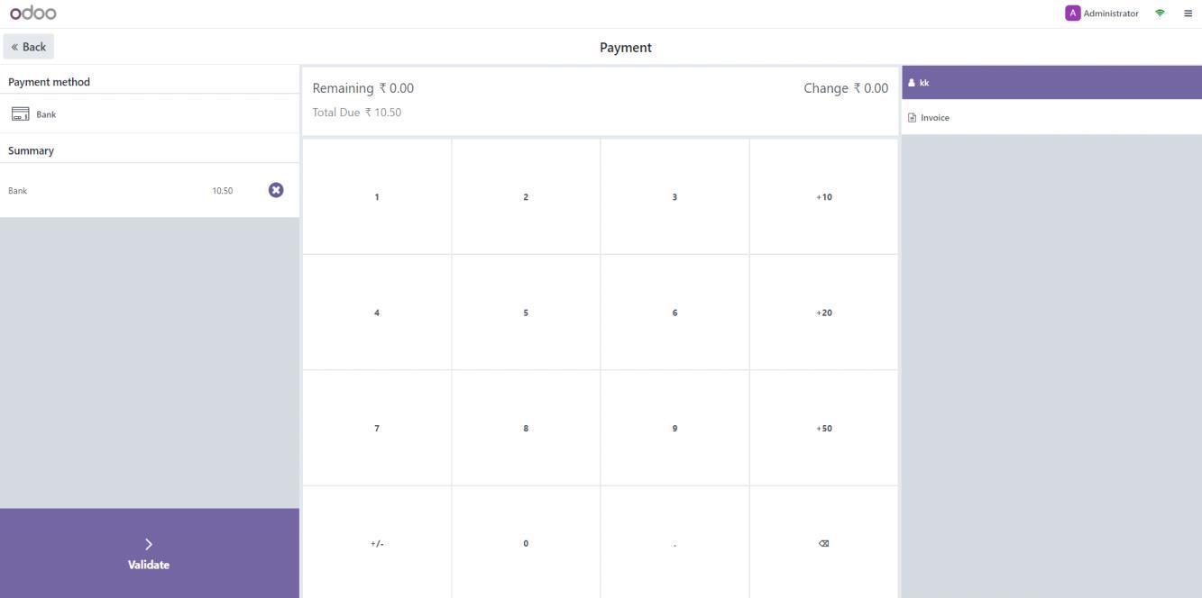 • After selecting the payment method, click Validate Payment to complete the sale.