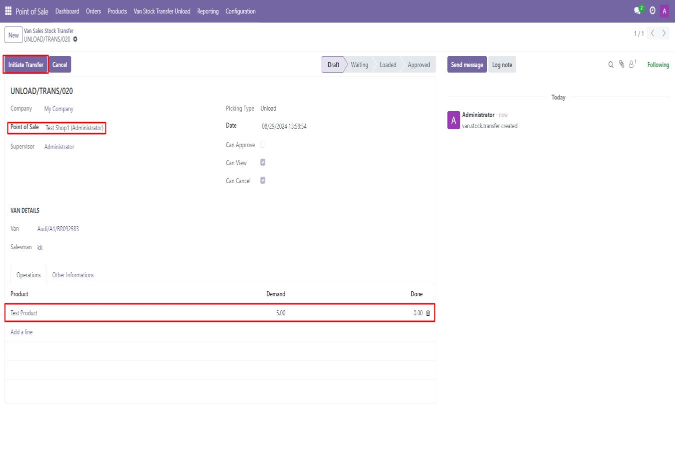 Screenshot 38: Van point of sale - Create an unload transfer