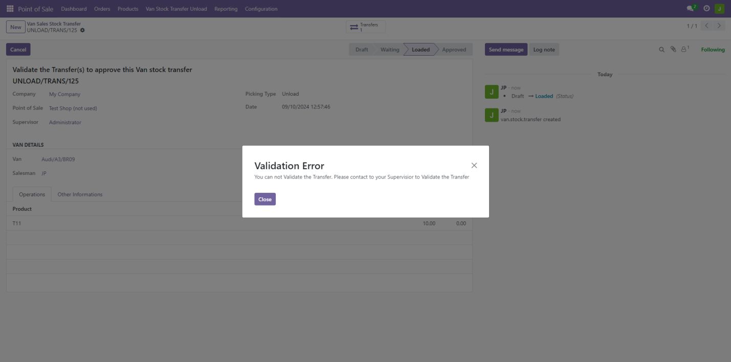 • As a salesman, you cannot validate the unload transfer.