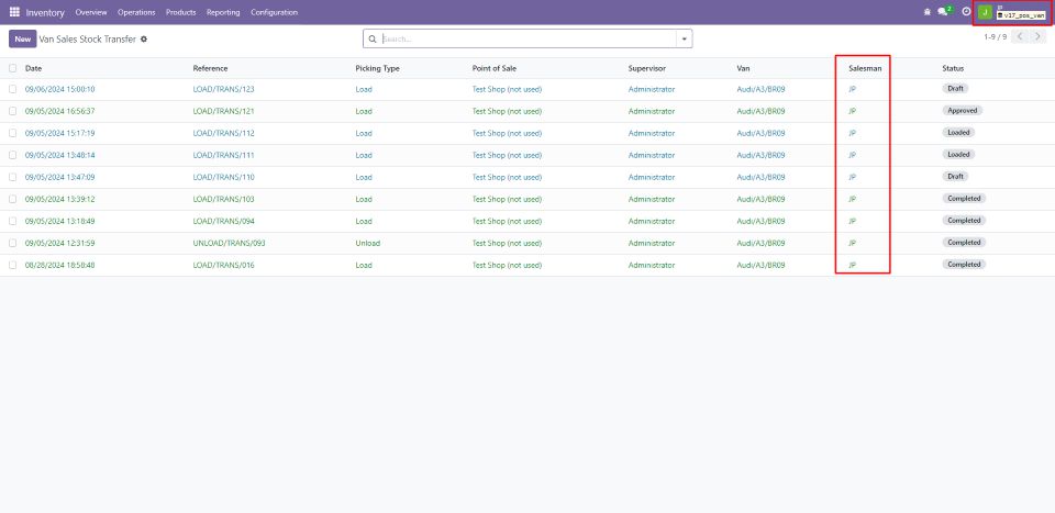 This module introduces new features to the Point-of-Sale system tailored for van sales operations. It ensures that each van's stock is tracked and recorded, with two main operations involved: loading and unloading. Both operations are recorded within the system for accurate inventory management.