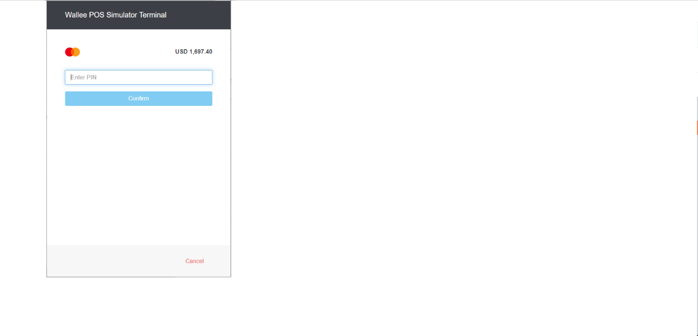 Screenshot 9: Wallee POS Payment Terminal PIN Entering Screen