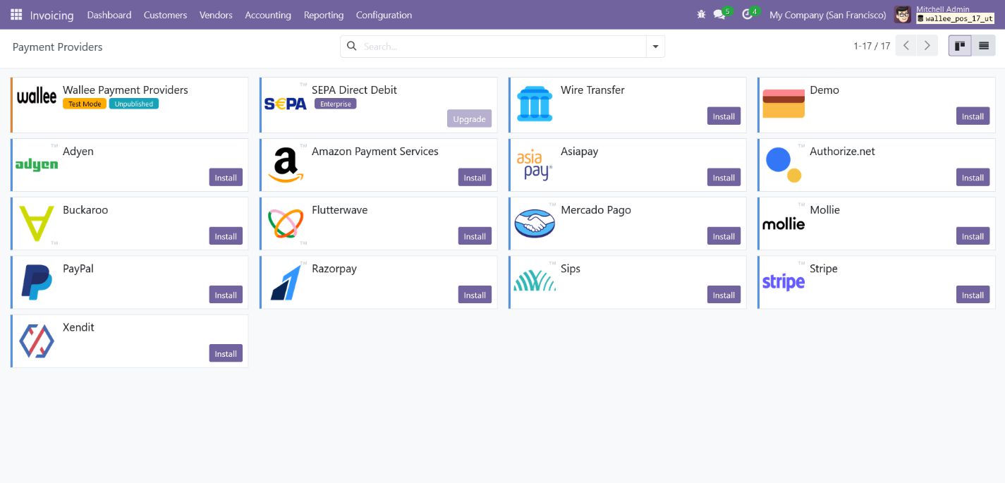Invoicing > Configuration > Payment Providers