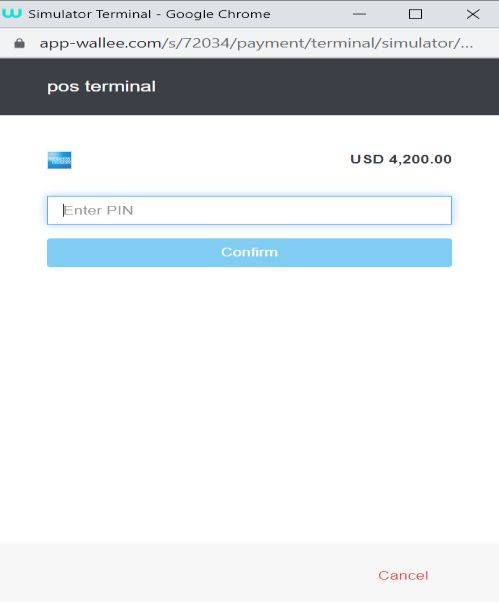 In the Wallee POS payment terminal, the payment amount will be displayed. Choose the card from the terminal and enter your PIN to complete the transaction.