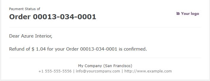 If a customer is selected during the payment process, an email will be sent to the customer mentioning the refund of payment along with the refund amount.