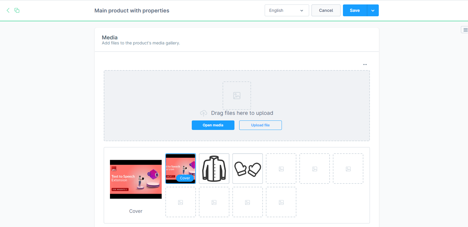 Figure 11. Setting ‘cover image’ to video frame generated from URL added in Product Media
