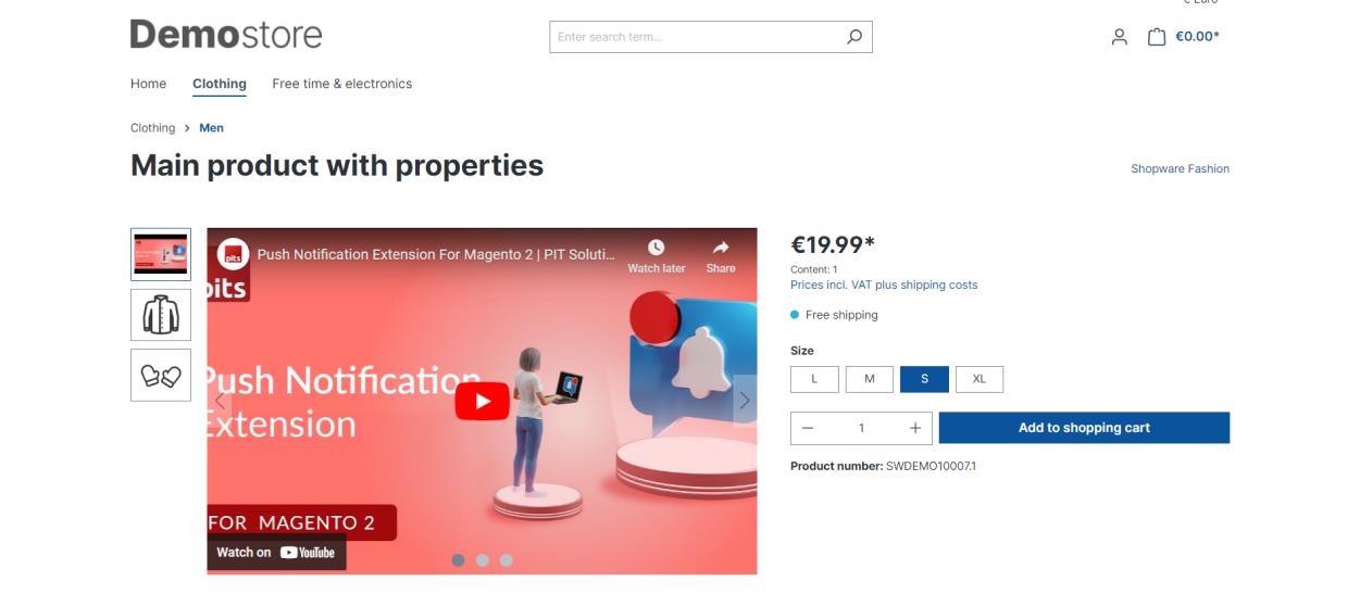 The Product Detail YouTube/Vimeo Integration Plugin for Shopware 6 smoothly combines YouTube videos with product images on your online store. Administrators can easily link YouTube or Vimeo videos to products from the backend, enhancing the product detail page for customers browsing your website. Plus, you can toggle video display on or off for each product, giving you control over how videos are shown in product detail page.
