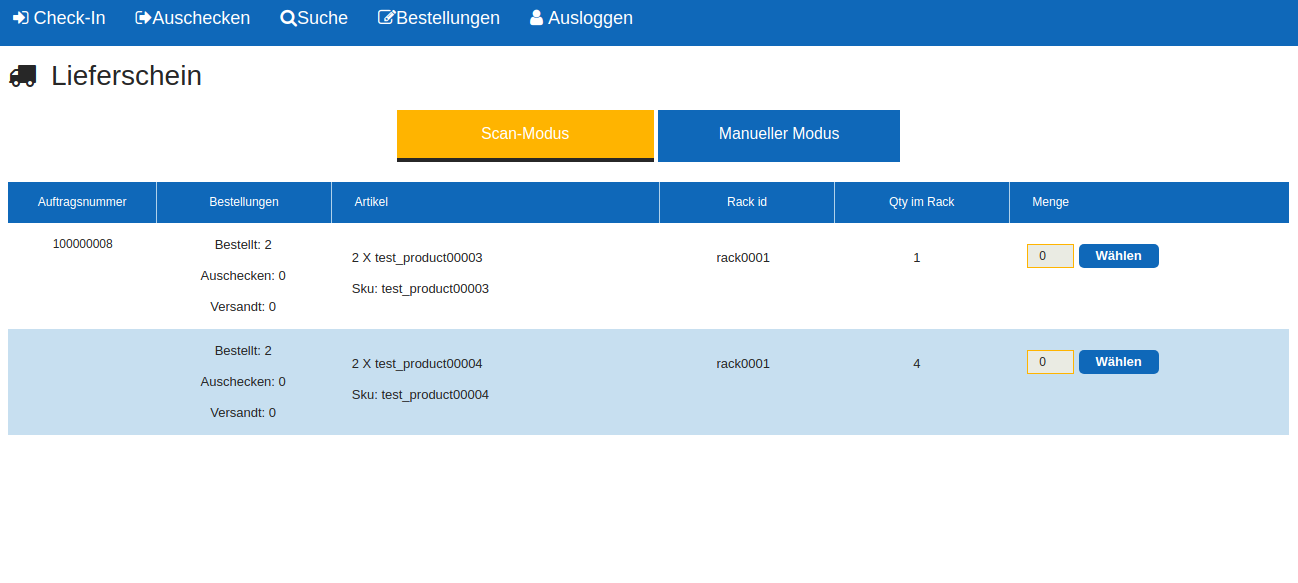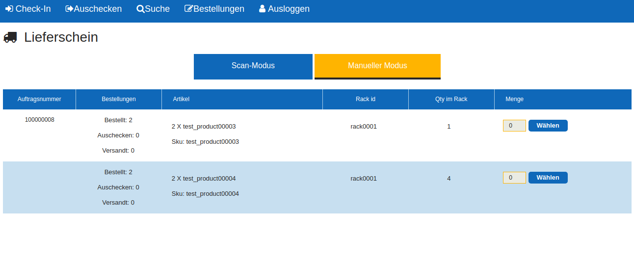 In the sample order page shown above, for the order (100000007) - ‘2 X test_product00004 (Remaining: 1)’ means out of two products ordered, one product is checked out and shipped, and one remains for to be shipped.