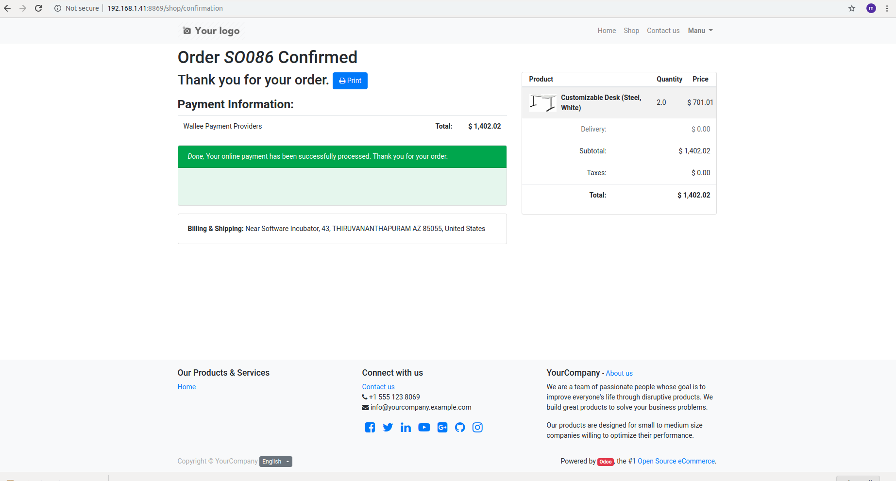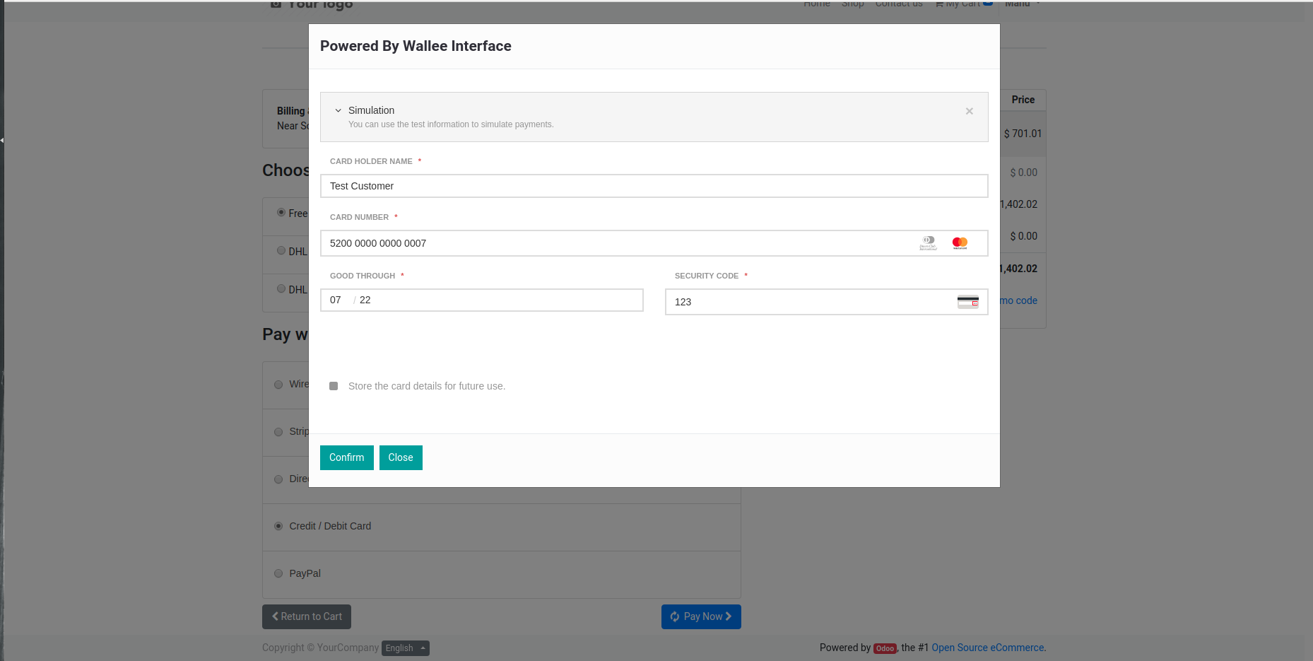 wallee extension from PIT Solutions is a connector between wallee and Odoo Web Shop. It is a standardized way to accept payments via a multitude of different payment providers in the world. It is a single payment gateway to send payments to Adyen, Braintree, Ingenico, Heidelpay, PostFinance, Concardis, FirstData, Datatrans, SagePay, Barclaycard, etc. Beside the payment processing wallee offers a wide range of additional features like reconciliation.
