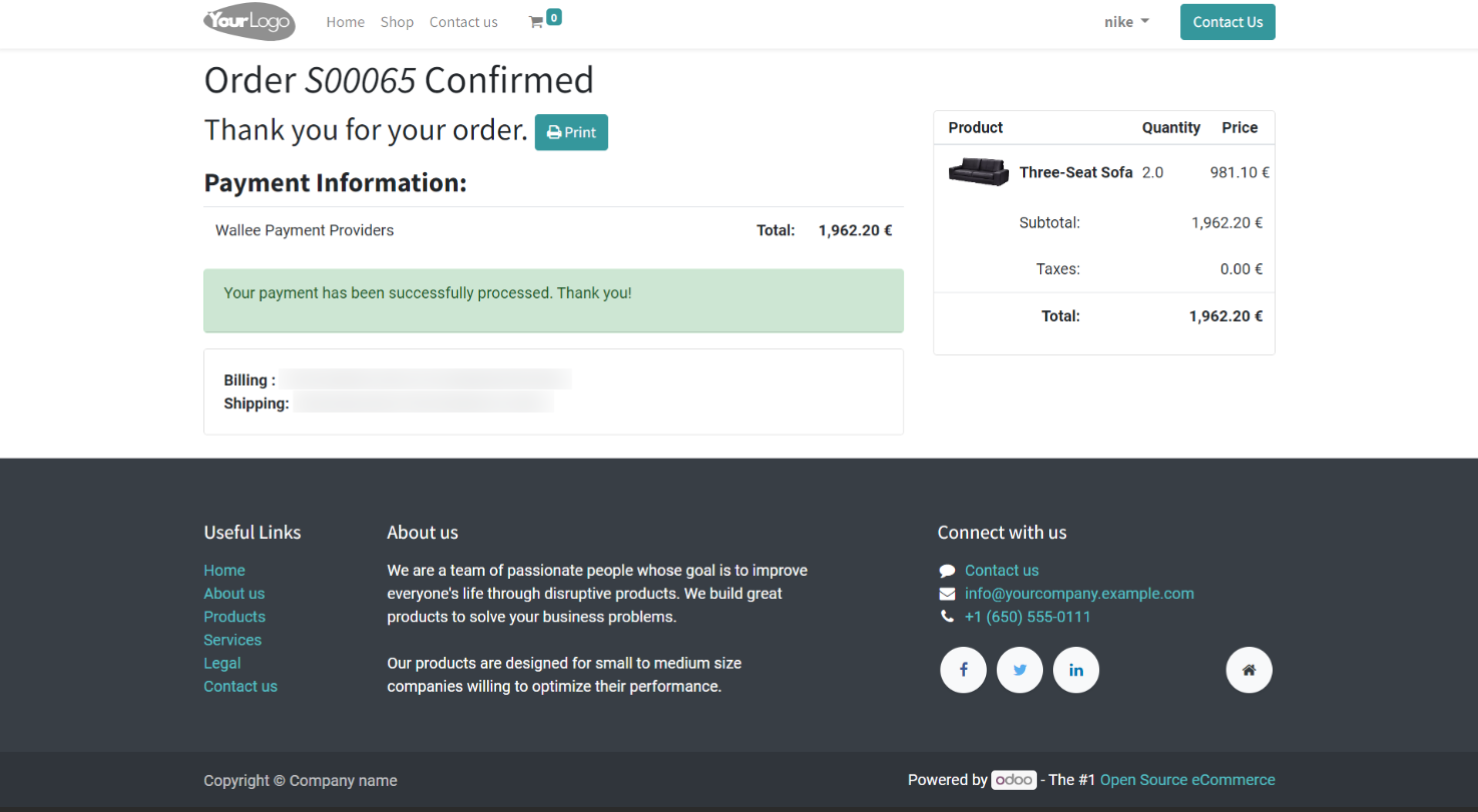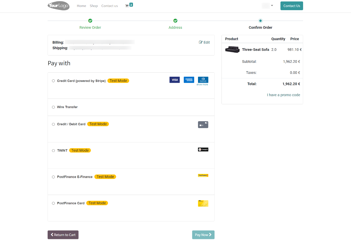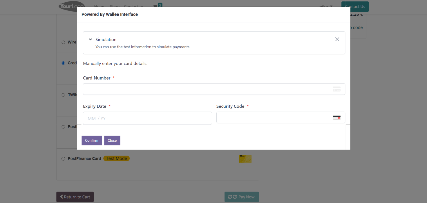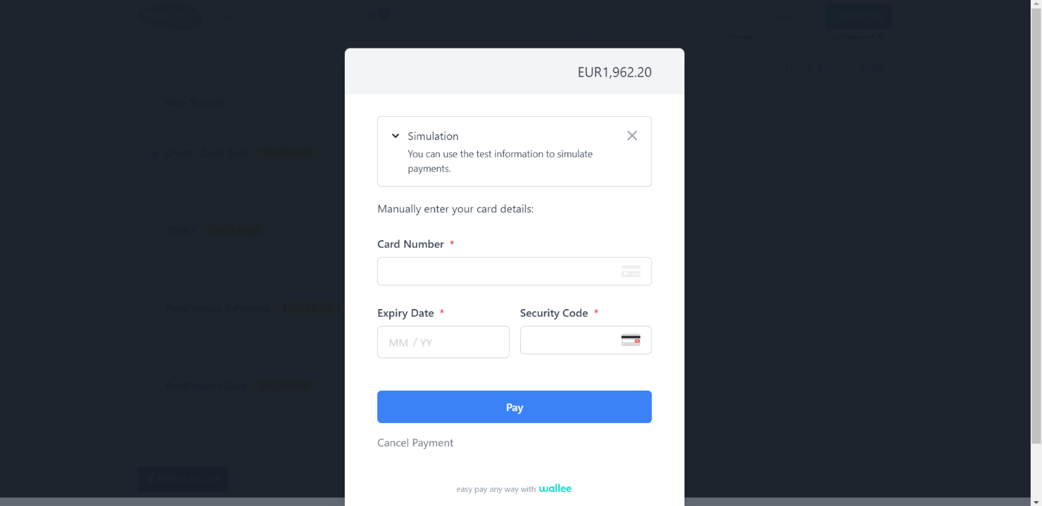 - Choose Wallee payment method and pay now.