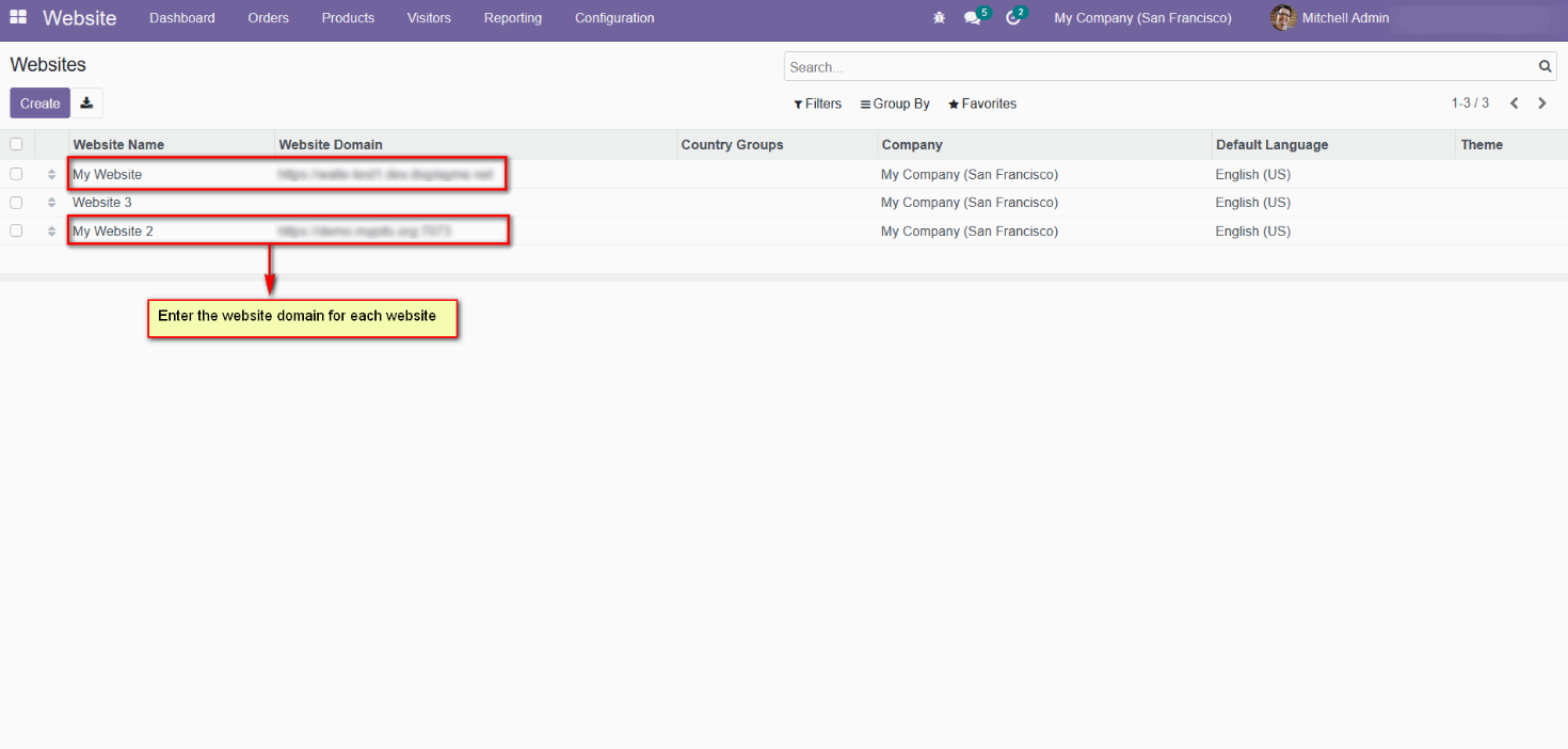 - For multi-website functioning, it is necessary to set the domain for the websites.