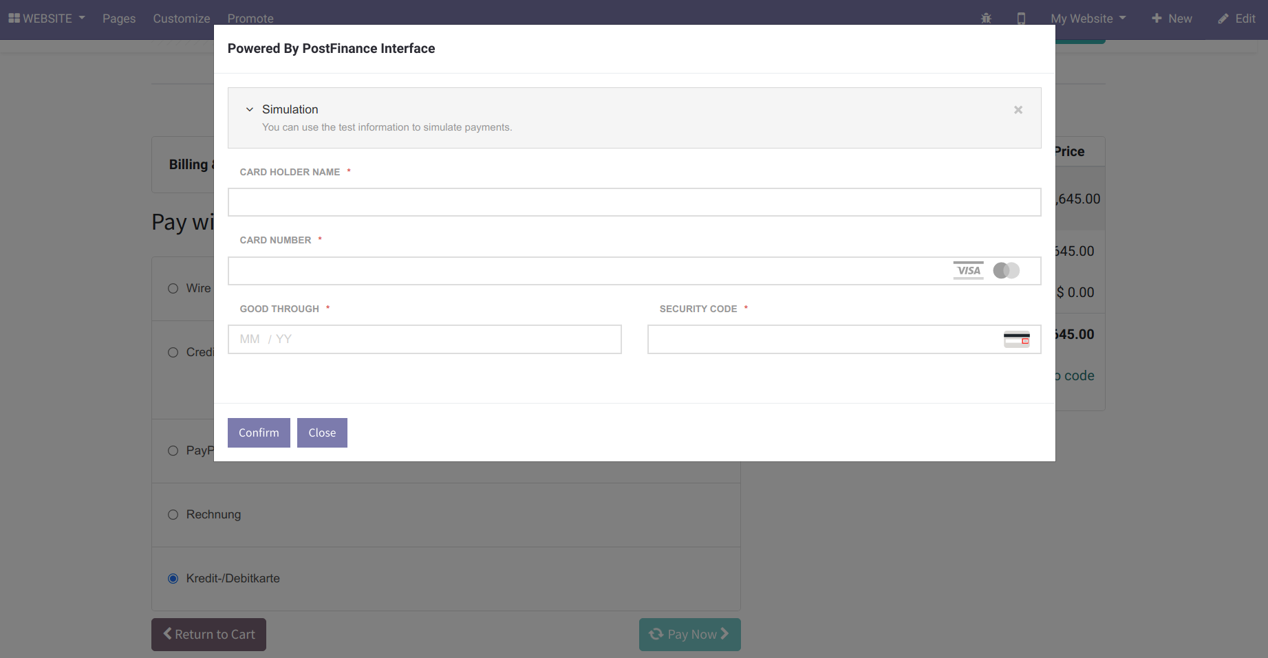 The PostFinance Checkout Flex extension from PIT Solutions serves as a connector between PostFinance Checkout Flex and the Odoo Web Shop. It provides a standardized way to accept payments through a wide variety of payment providers worldwide. The extension supports payment gateways such as PostFinancePay, TWINT, PayPal, Online Banking, and Credit/Debit Cards. More information is available under PostFinance Checkout Flex.