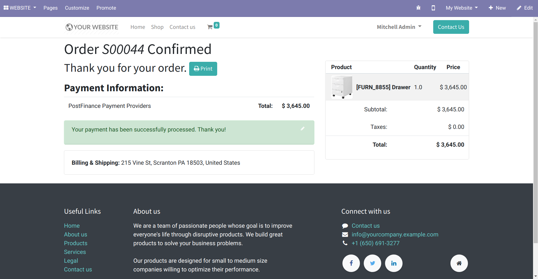 This extension links Odoo Shop users to a payment hub, which has over 50 payment gateways and processors integrated. It operates using the Rest API, helping to reduce cart abandonment by offering customers their preferred payment gateway. It also integrates with different payment service provider APIs, lowering payment routing costs.