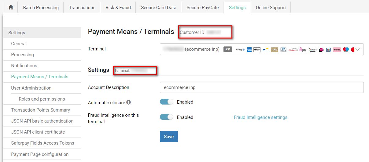 - API Credentials: Secure the necessary API credentials for both live and test environments, including Terminal ID, Customer ID, API Username, and API Password.