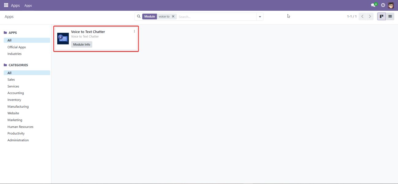1. Install the Voice Speech Module – Ensure the module is installed in your Odoo store.
