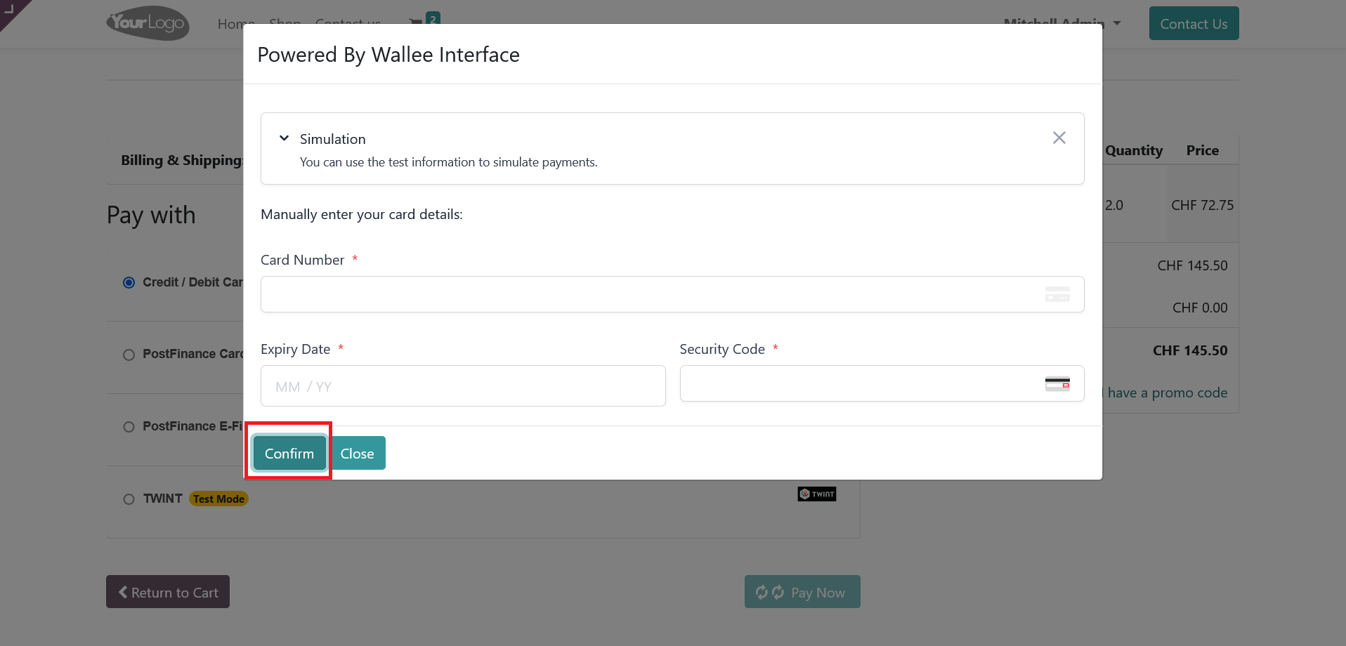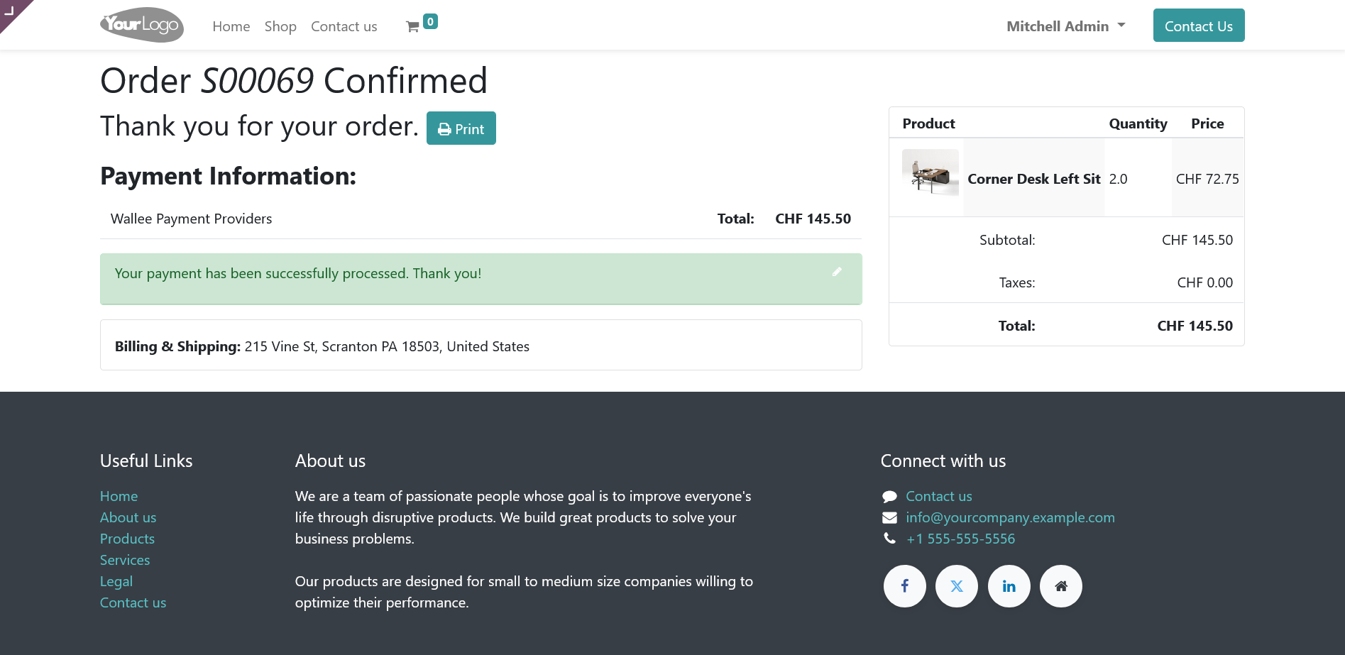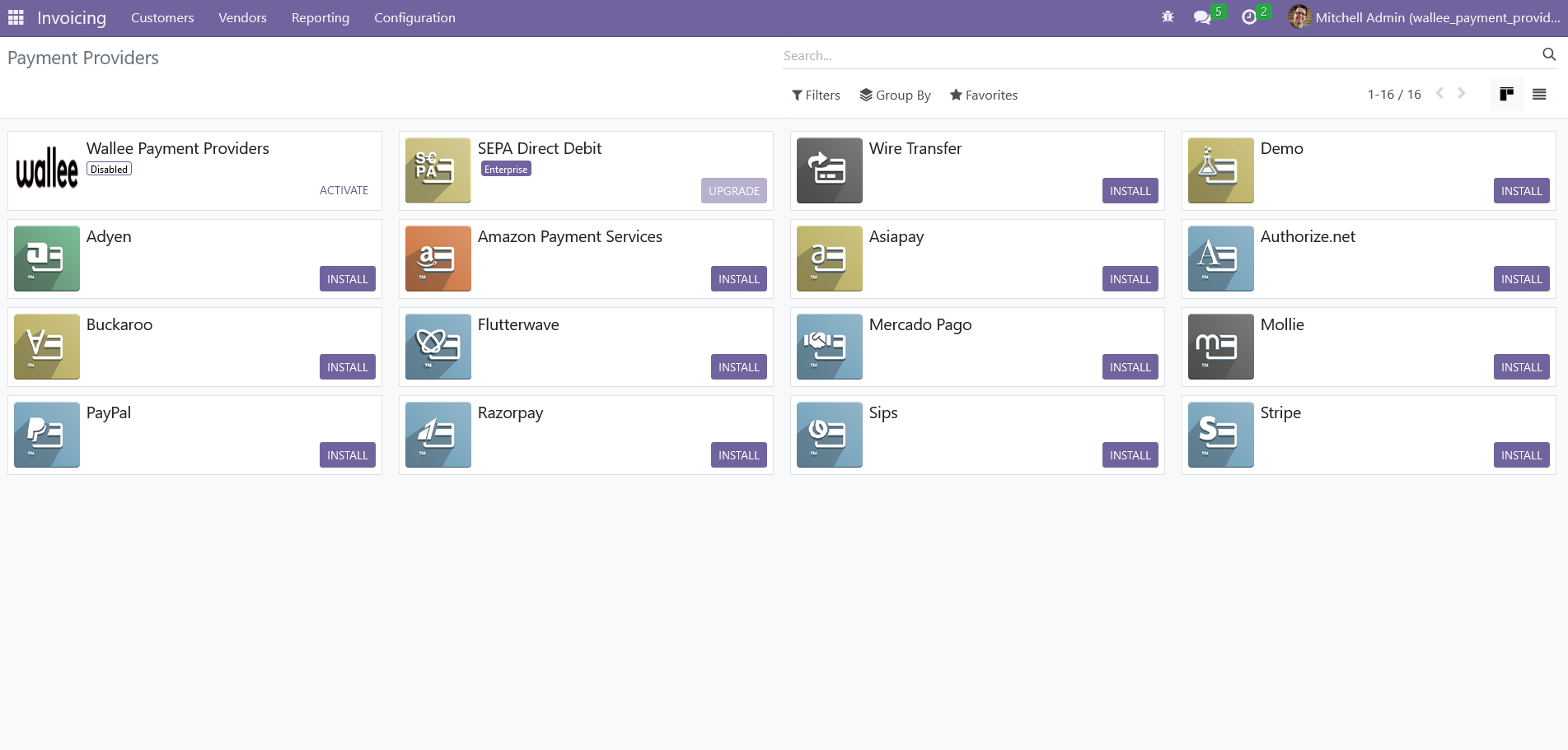 wallee extension from PIT Solutions is a connector between wallee and Odoo Web Shop. It is a standardized way to accept payments via a multitude of different payment providers in the world. It is a single payment gateway to send payments to Adyen, Braintree, Ingenico, Heidelpay, PostFinance, Concardis, FirstData, Datatrans, SagePay, Barclaycard, etc. Beside the payment processing wallee offers a wide range of additional features like reconciliation.