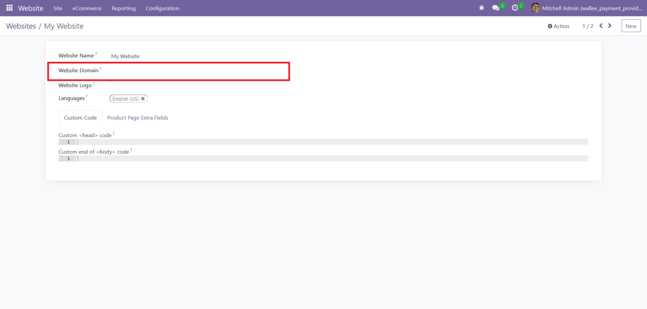 - Associate the Provider with a Website: Select the desired website to link this Wallee provider.
