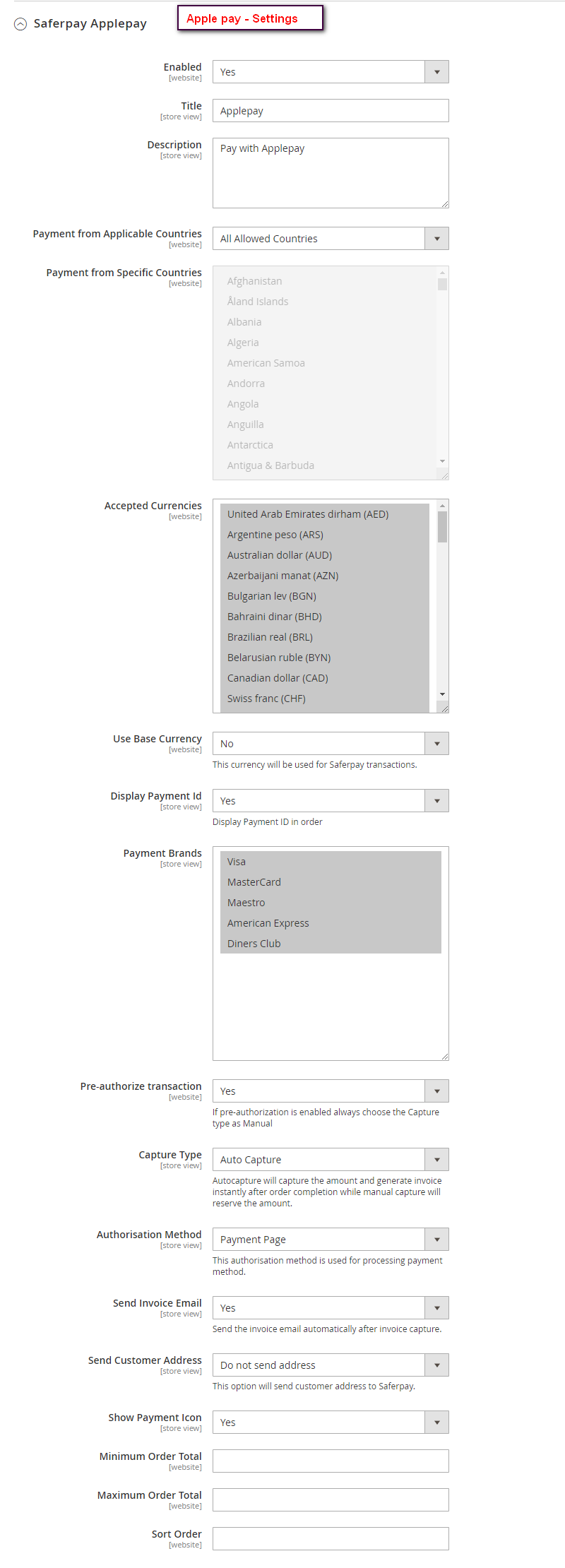 - Added a new option in Googlepay and Applepay wallet payment settings in Admin panel to select either "wallet only" or "wallet along with card entry form" in the payment page.