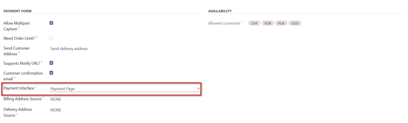 The configuration options for the selected payment method will be displayed, as shown in the figure below.