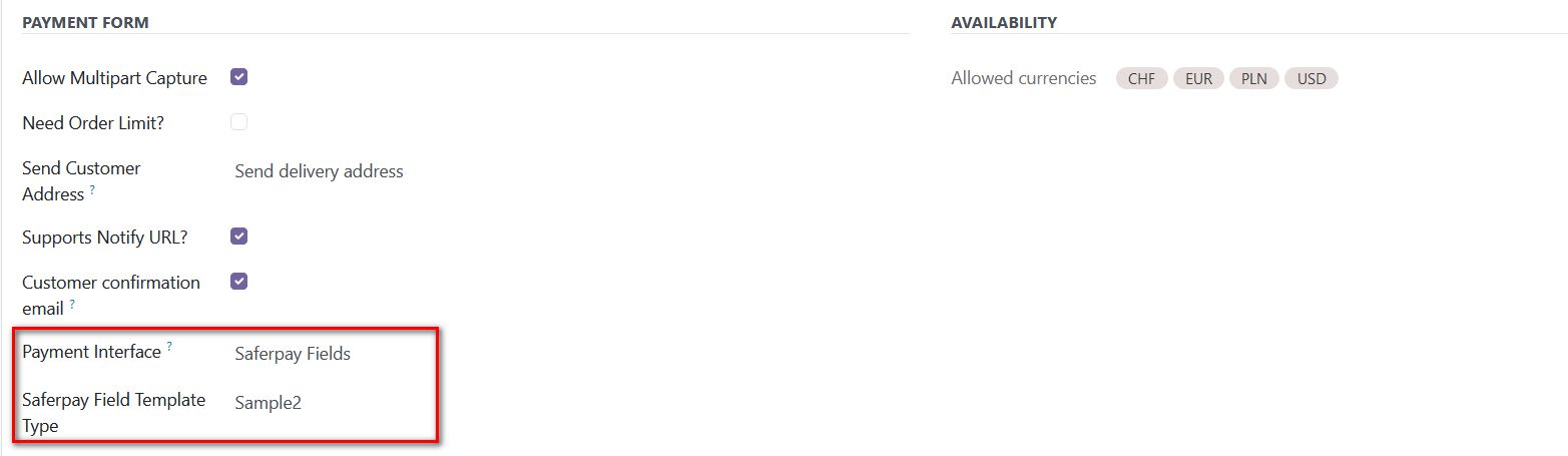 The configuration options for Saferpay Fields will be displayed, as shown in the figure below.