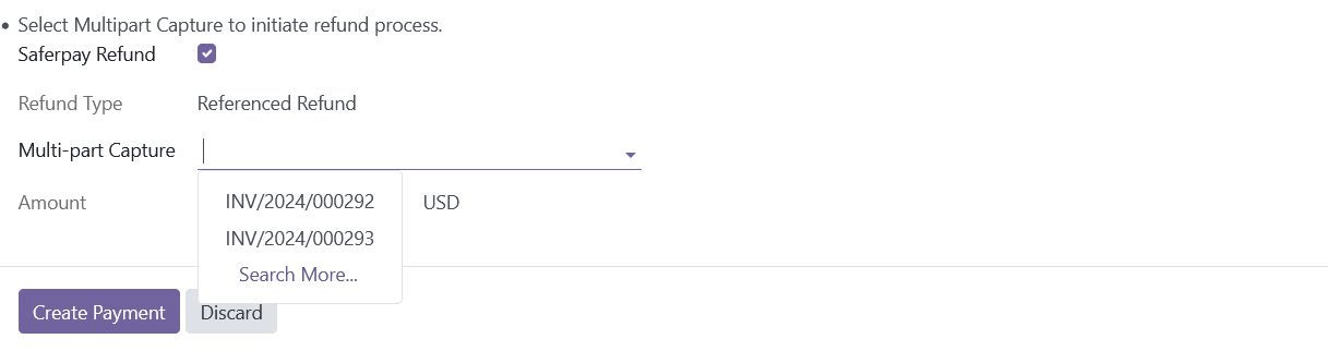 - Multipart Capture: You can capture the amount either fully or partially. Clicking the Capture Transaction button captures the full amount, while selecting Multipart Capture allows for partial captures.