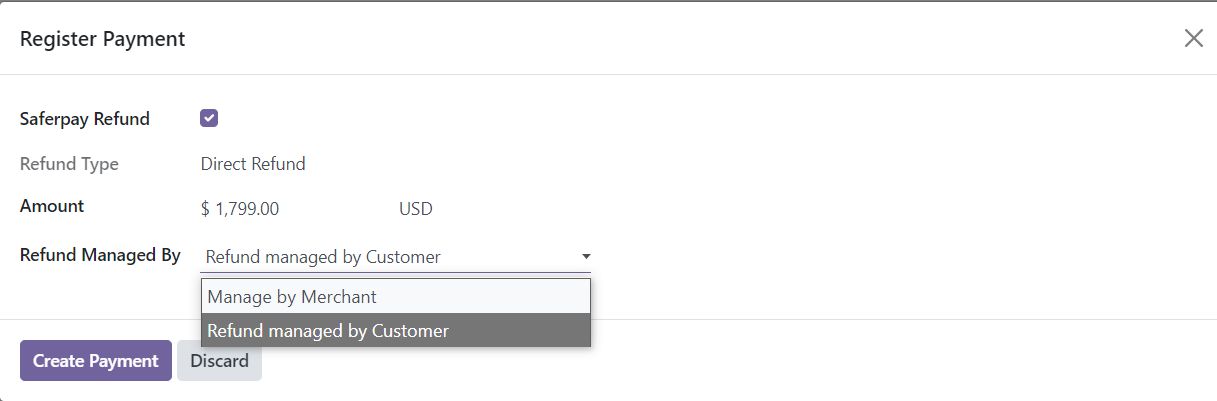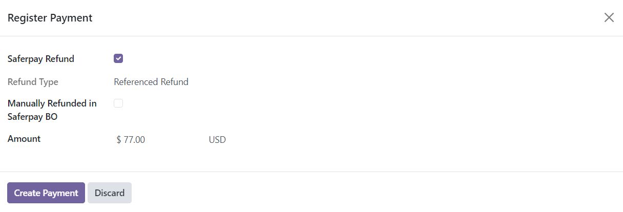 - Manually Refunded in Saferpay BO: If refund is completed from Saferpay Backoffice to map same in Odoo need to enable this button to proceed with the credit note flow