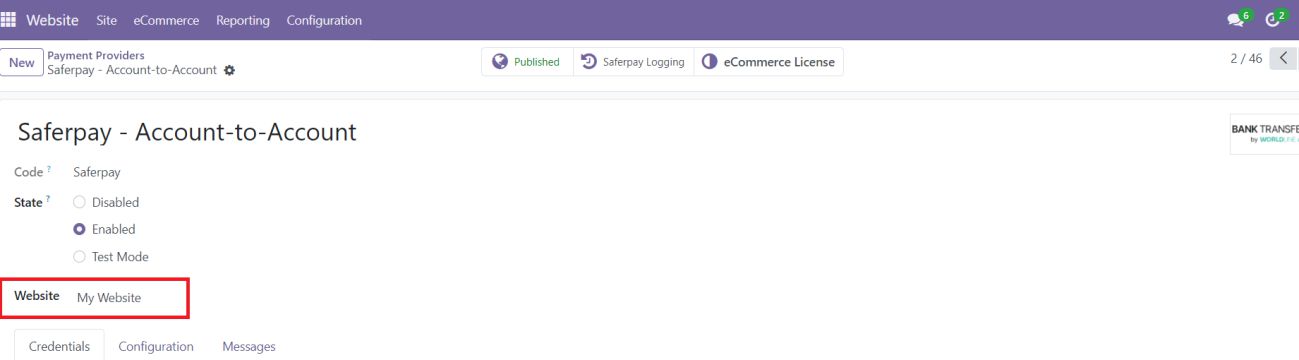 - After creating the Saferpay payment provider, ensure to map the respective website to it and add the necessary Saferpay credentials. This step is crucial for enabling the payment provider to function correctly for each specific website.
